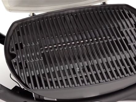 Чугунная решетка, покрытая фарфоровой эмалью, у всех моделей Q разделена на две части. Чугун превосходно нагревается и поддерживает температуру, а эмаль способствует легкой очистке. Кстати, для расширения возможностей приготовления Weber выпускает специальные чугунные противни, такой противень можно установить вместо одной из частей решетки.