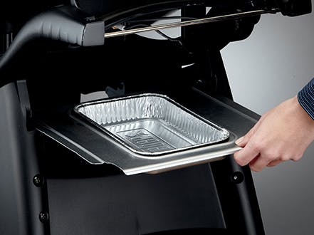 Благодаря форме котла гриля Q, стекающие по стенкам соки направляются в одноразовый поддон, который можно легко снять, очистить или заменить.