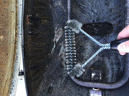 Используя стальную щетку, очистите горелку перпендикулярными движениями, чтобы снять нагар. Эту процедуру следует проводить по крайней мере один раз в год.